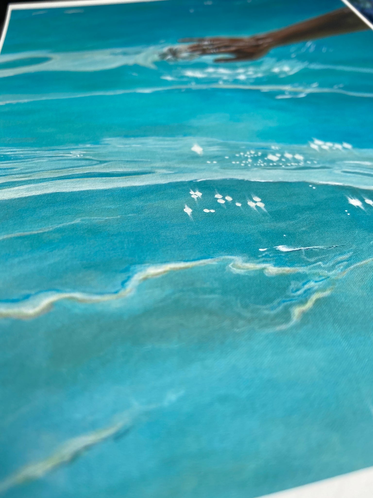 My second-largest and most intricate tropical painting is now available in a print that is just as refreshing and crystal clear, reminiscent of days in the ocean.