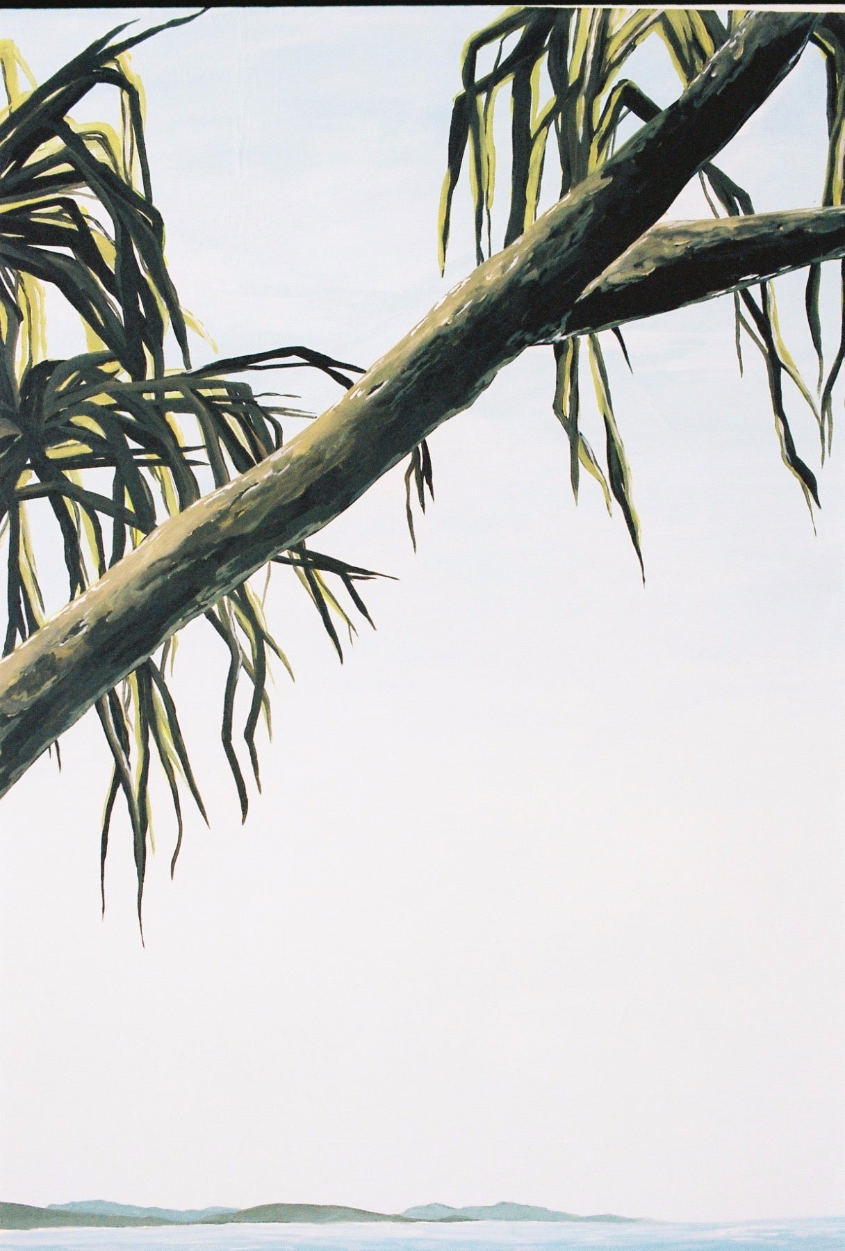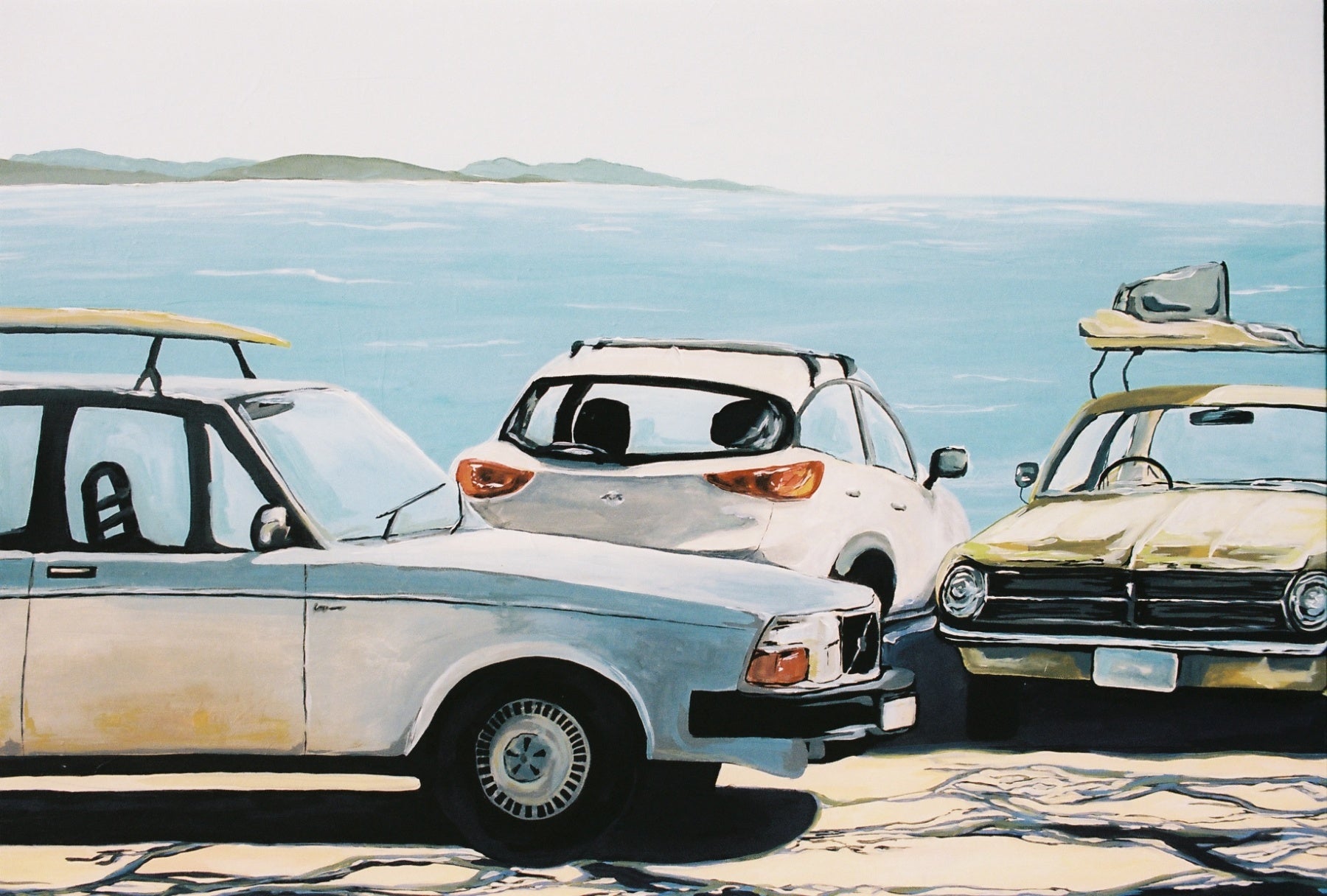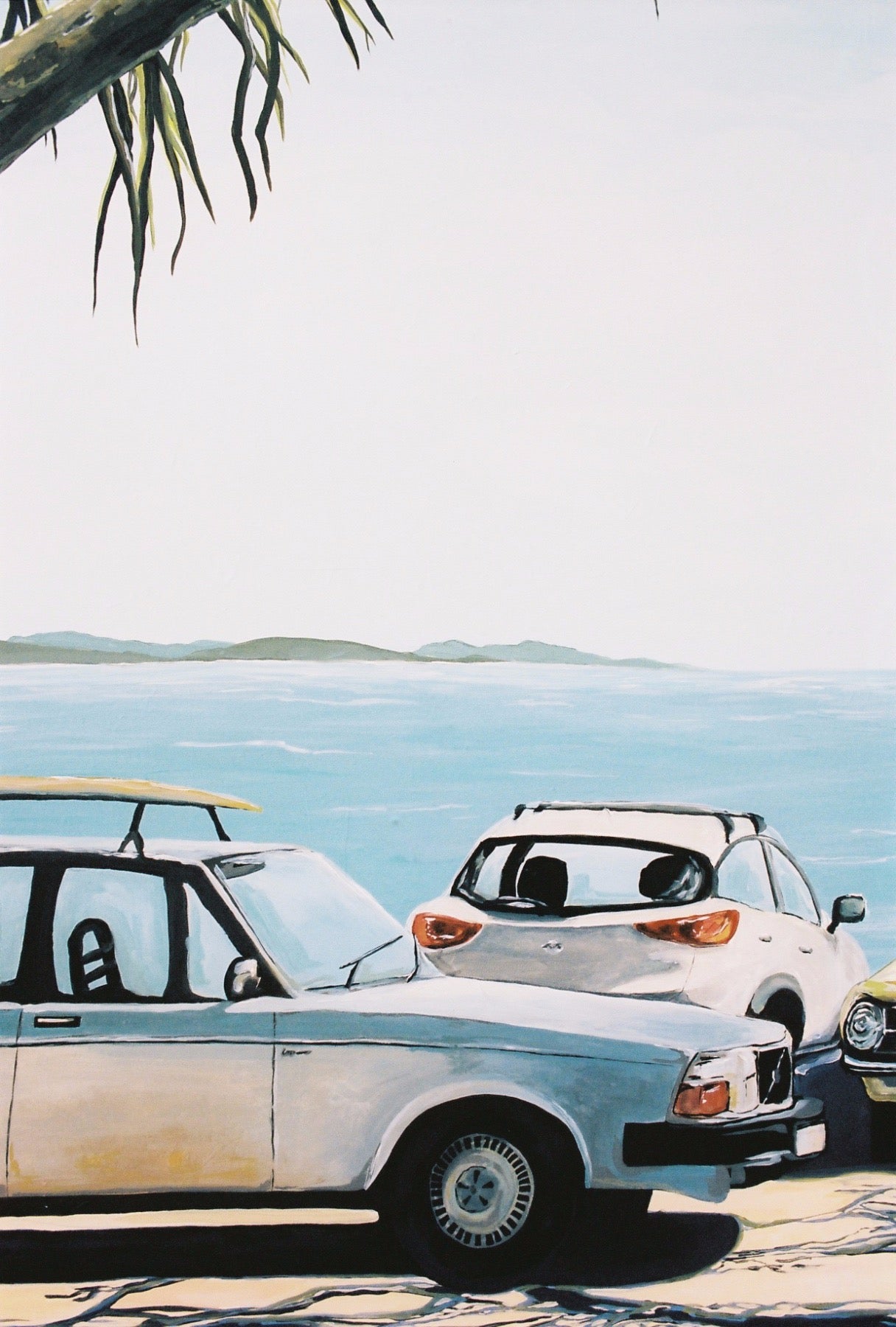 The largest painting I've ever attempted and completed. A window into a dreamy coastal morning, with a hazy horizon and strong pandanus palms framing the vintage cars lined up to watch the surf. I've loved sitting and floating away into this seascape.
